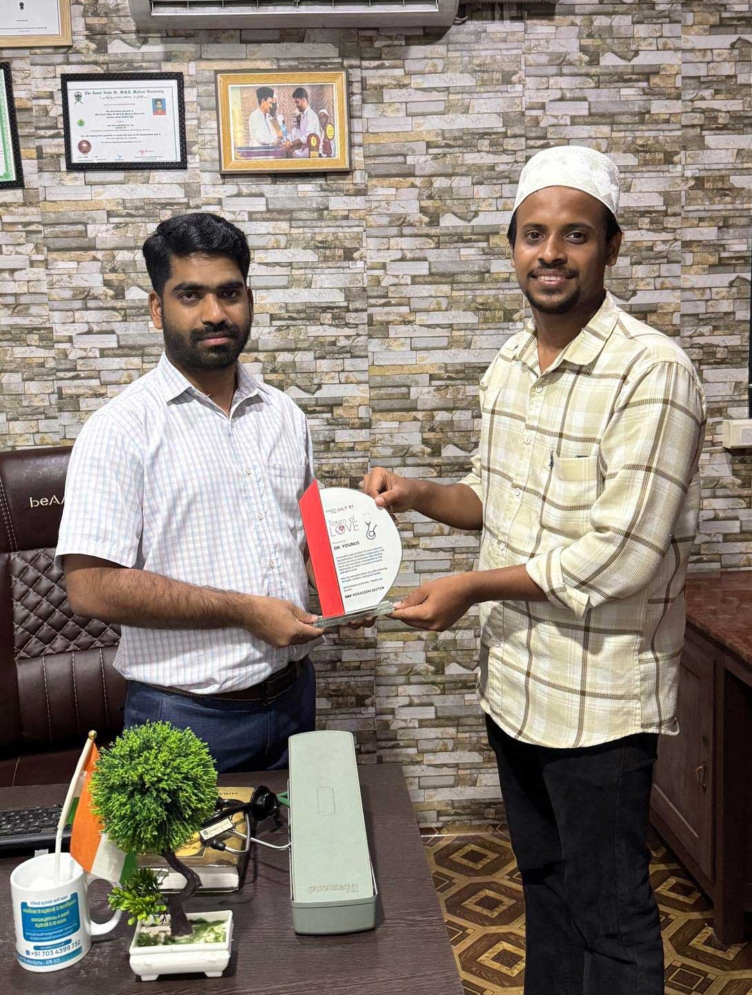 A Memorable Encounter: Dr.Unis Kodasseri Receives Token of Love from Beloved Leader Panakkad Sayyid Swadiq Ali Shihab Thangal